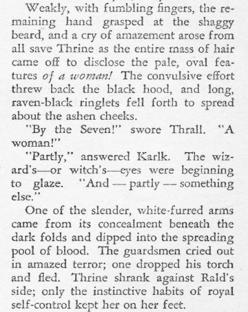 Rald agrees that an evil, murderous wizard can never be a man, but hilariously he has misunderstood Thrine. For, in fact…