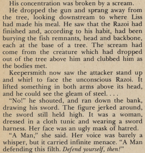 Rald agrees that an evil, murderous wizard can never be a man, but hilariously he has misunderstood Thrine. For, in fact…