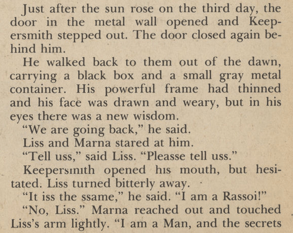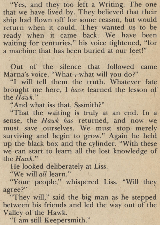 Khalk unties himself with an extra pair of small, white furred arms that emerge from his robes! I mean, that’s absolutely great! Equally fun in the kind of nonchalance with which Karlk assures Rald that there’s a LOT about him no one knows. It’s a great scene, and very weird.