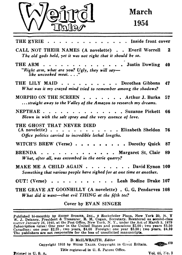 The next issue, Jan 1937 v. 29 n.1, opens with Wright reflecting on the “necrology” of Weird Tales: