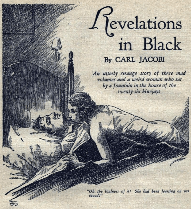Roughly a quarter of the way through the Hallowe’en Season already, how the hell did that happen!? Ah, but let us forget the merciless march of time with some timeless Weird Fiction! And this time, we’re looking at Carl Jacobi’s “Revelations in Black” from the April 1933 issue of Weird Tales!