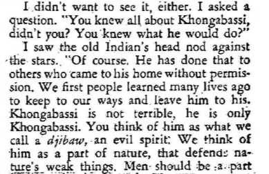 That said of course, the ending is great and fairly radical for the era – the idea that these stupid white people can’t handle themselves in the wilderness, even when told to their face what dangers there are out there, is satisfying, as is the explanation that they’ll have to come up with a lie that the white people will believe with regards to Cuff’s disappearance. This is a fairly common thread in a lot of Wellman’s fiction, the idea of indigenous or folkloric knowledge as fundamentally valid and valuable and deserving of respect.