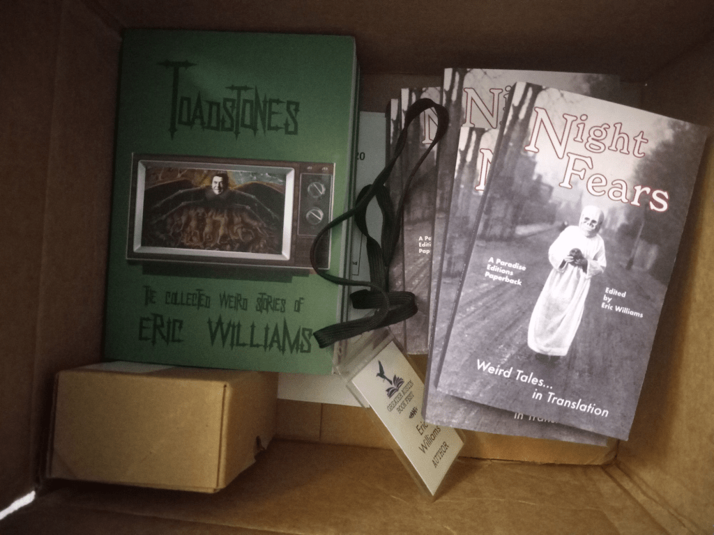 I suppose I should get down to brass tacks, thought: how many books did I sell? Grand total of seven, or about 1/hr for the whole day. Three Toadstones and four Night Fears, and I swapped four (two of each) to folks for copies of their books. I brought twenty of each, which meant I hauled a lot back, but that’s okay… although if anybody out there wants a copy of either (or both) of them, I’d be happy to sell em for, lets say, $20 each? Feel free to shoot me an email at geoliminal [at] gmail [dot] com if that’s the case!